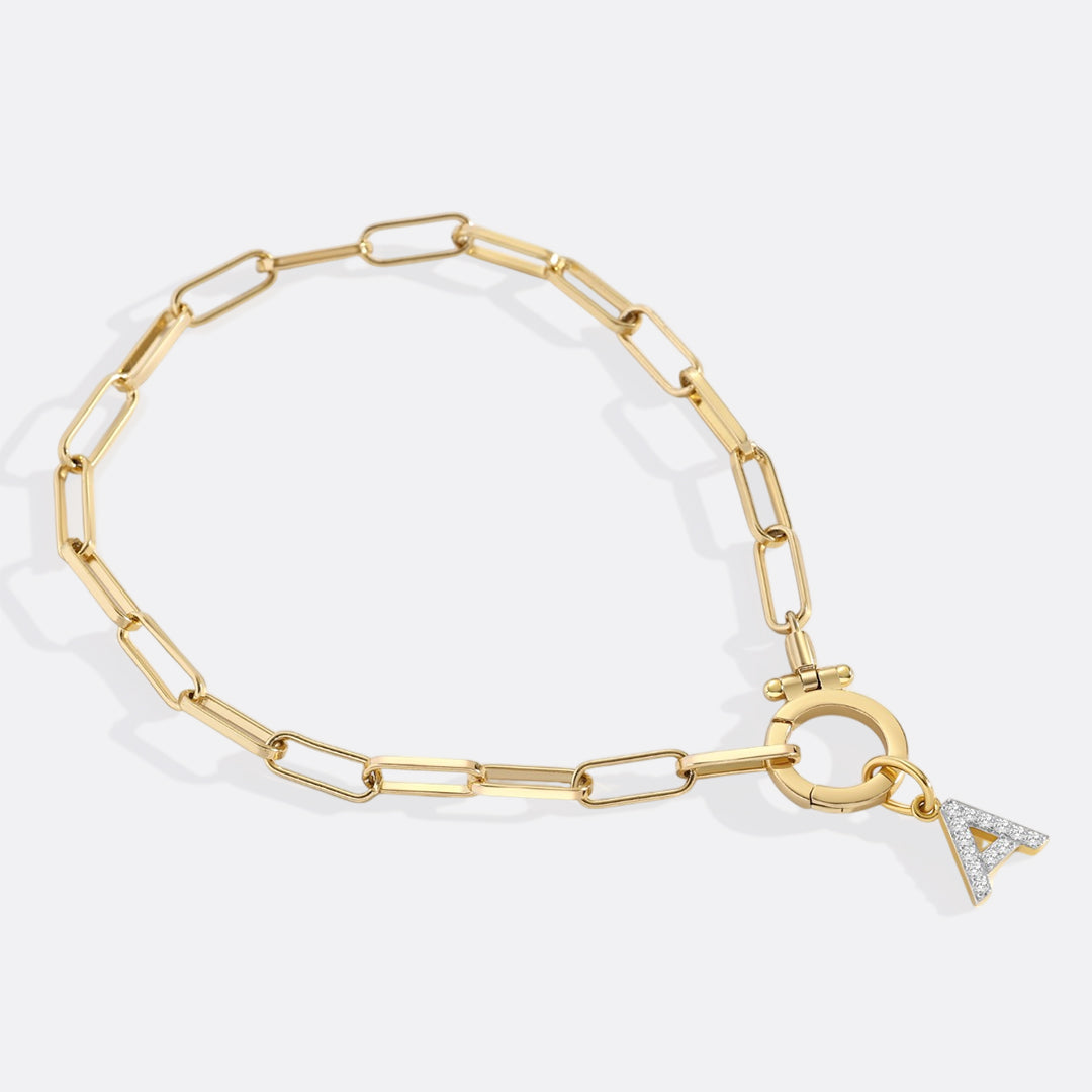 Say it with gold. This letter charm in 18k gold and pavé set simulated diamonds adds a little shine with a lot of meaning. Choose your letter and wear it your way—bold, delicate, stacked, or solo.
