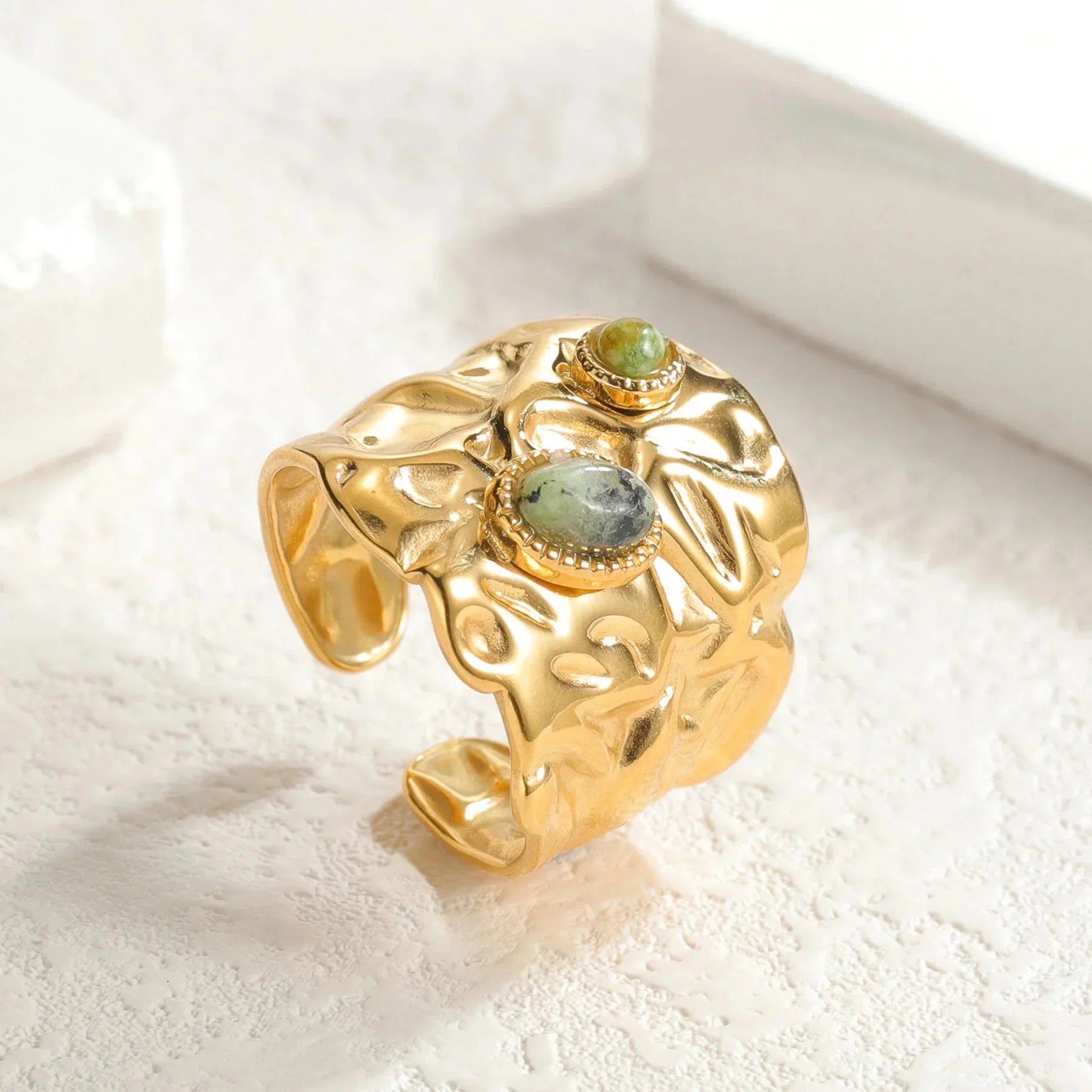 Discover the elegance of our high-quality stainless steel gold color waterproof vintage open ring, designed specifically for women who appreciate unique jewelry pieces. This exquisite ring features natural stones that add a touch of sophistication to any outfit.