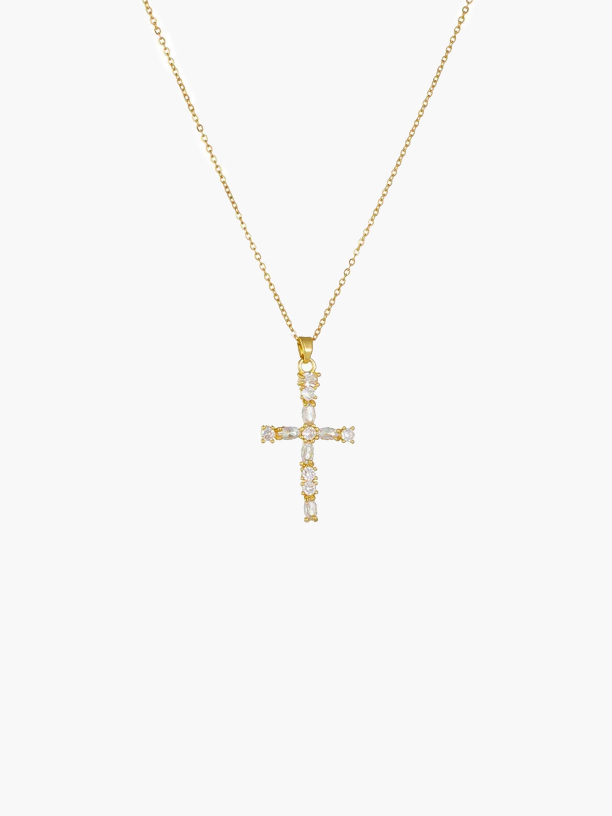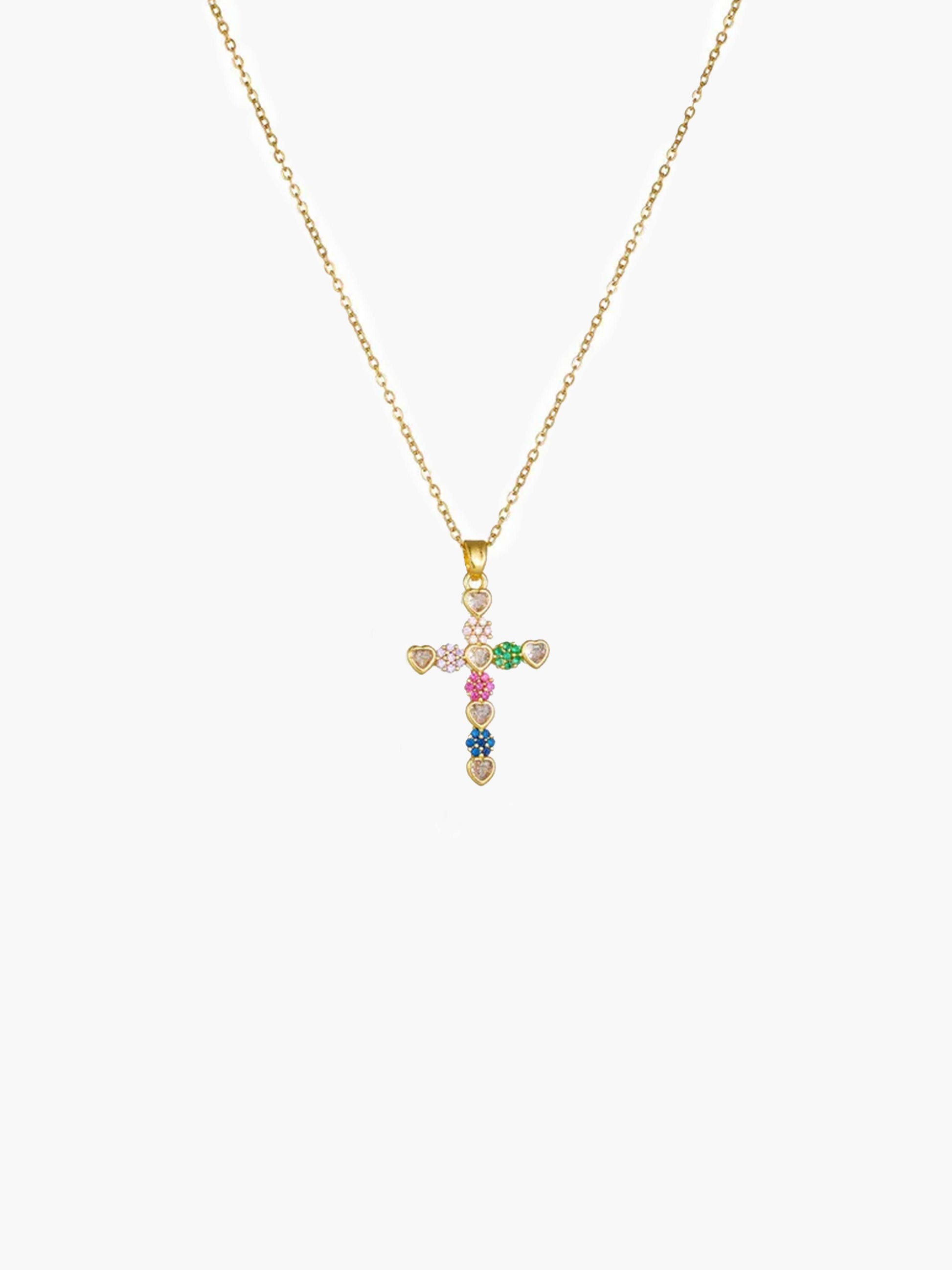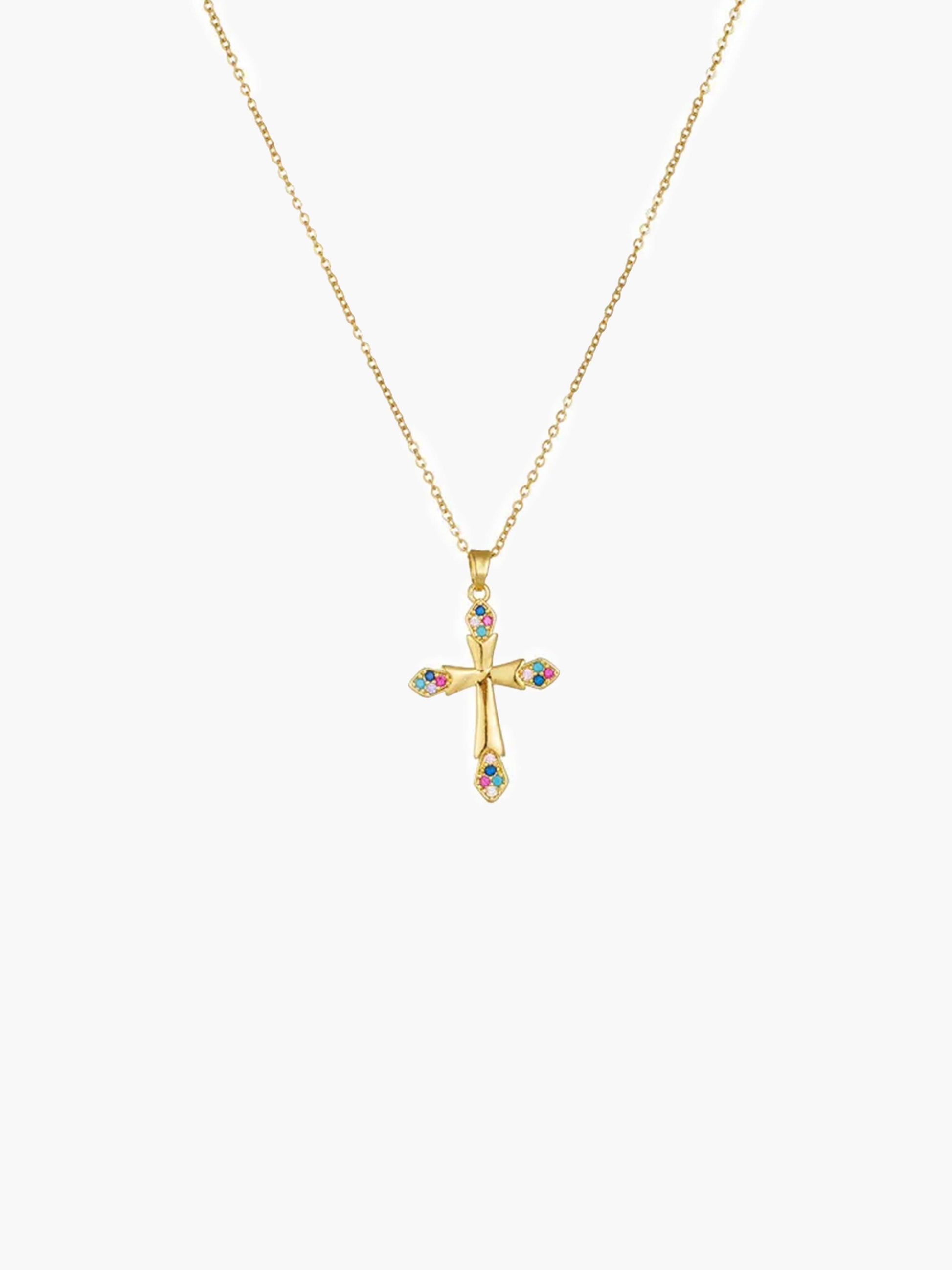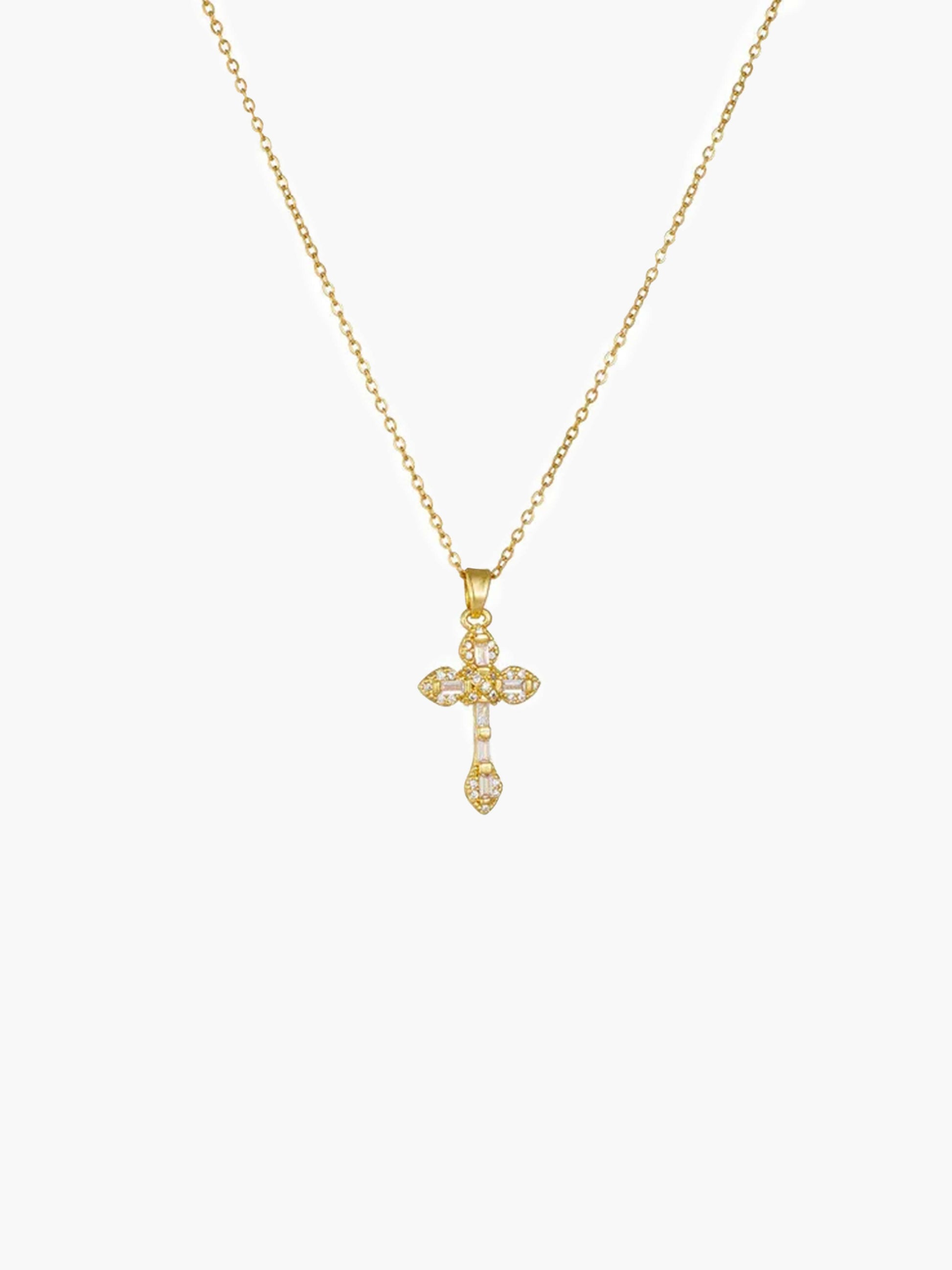 Elevate your jewelry collection with this stunning cross necklace that combines beauty and style. Its unique design makes it a versatile accessory that can be worn alone or layered with other necklaces for a trendy look.