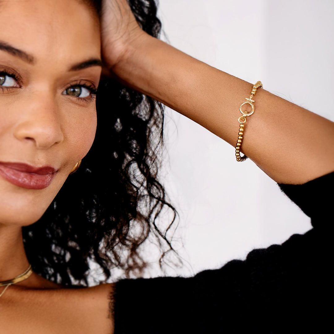 Premium-Grade Stainless Steel with 18K Gold Beads: Durable, nickel-free hypoallergenic stainless steel, plated in 18K gold for a refined, resilient finish.